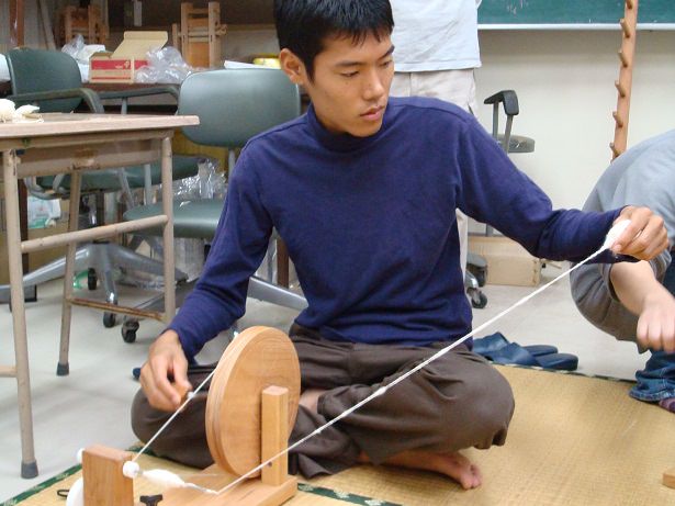まずは綿から糸紡ぎ。