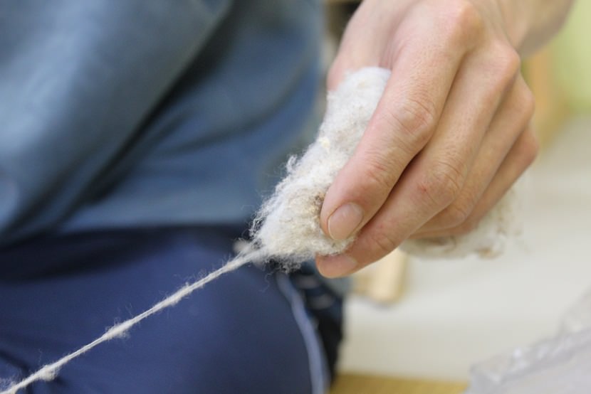 ぜんまい綿だけだと繊維が短くて糸が切れやすいし、ハンドカーダーという道具でブラッシングする時もひっかかってやりづらかったです。